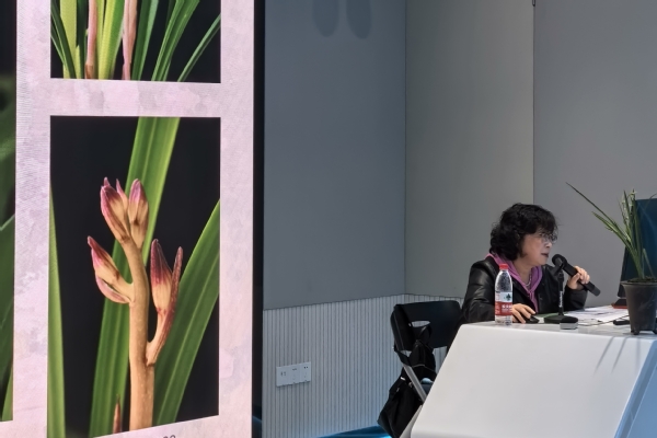 徐华老师是上海市非物质文化遗产—兰花栽培技艺的传承人,上海市杰出技能人才,她用一个小时的时间通过生动的讲述、丰富的图片和实物展示,辅以视频向同学们介绍了中国兰的历史渊源、栽培技艺和鉴赏常识。同学们聚精会神,仿佛置身于非遗文化的悠久历史长河之中 ,也被徐华老师四十年如一日深耕于中国兰的栽培与创新的工匠精神深深感染。
