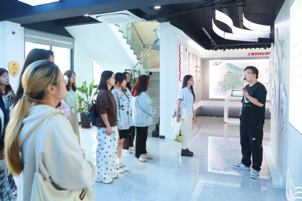 师生们首先来到新时代上海党建引领农村集体经济发展创新实践基地。实践基地以图文、实物、电子地图、多媒体互动屏等形式展示了上海党建引领到农村集体经济发展的整体情况以及典型案例,一系列创新实践案例让师生们了解了党建如何为农村集体经济发展注入强大动力,充分感受党组织在农村发展中发挥的关键核心作用。