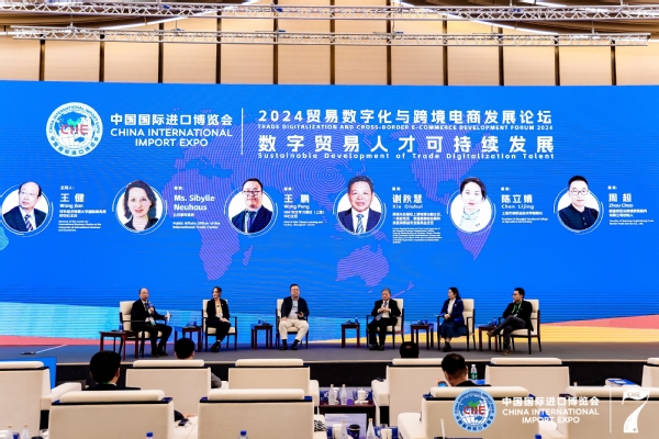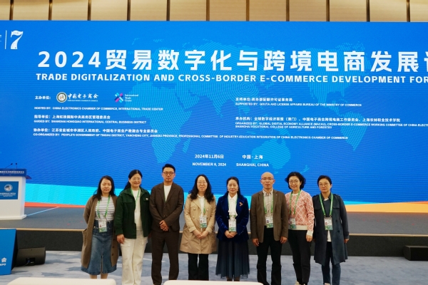 11月6日,学院携手全球数字经济联盟(澳门)、中国电子商会跨境电商工作委员会,在国家会展中心(上海)平行会场4.2H C2厅,联合承办“2024 贸易数字化与跨境电商发展论坛”。院长陈立婧参加论坛并在圆桌论坛交流发言。学院数字经济大师沈跃华、创意系相关教师参加本次活动。本次论坛得到中国电子商会、联合国国际贸易中心的大力支持。