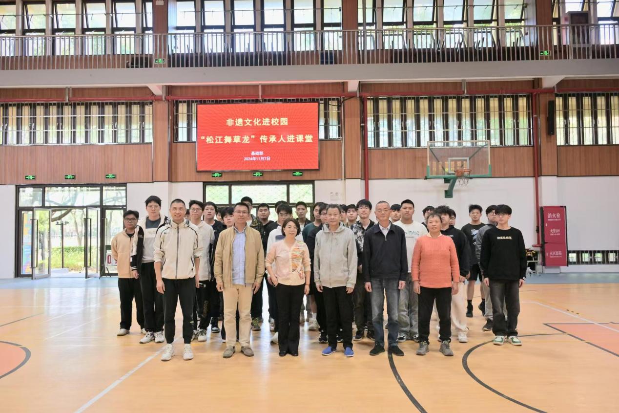 为推进课程思政高水平建设,11月7日下午,基础部邀请原松江区文联副主席、叶榭舞草龙传承人谢德均一行3人来到体育课堂,为师生开展了一场精彩的舞草龙现场教学活动。