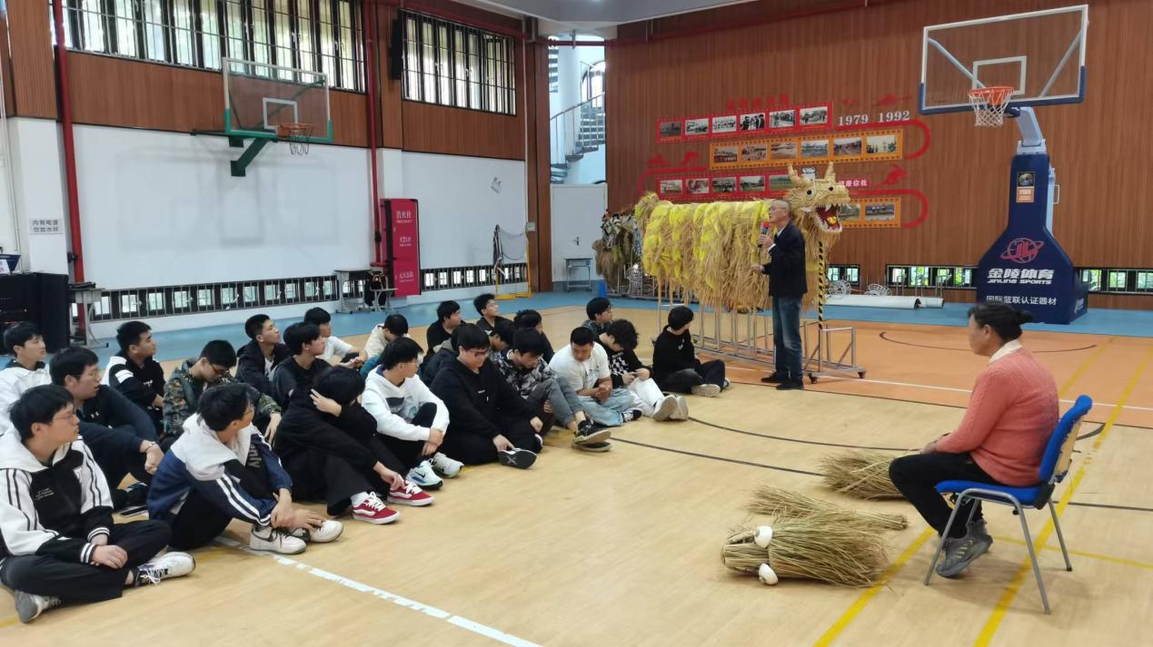 谢德均老师以松江舞草龙的起源为起点,讲述了舞草龙的发展历程,剖析了在传承上当前面临的问题,充分展现了一位老党员对传统文化的坚守与担当。谢德均老师凭借精湛的技艺对舞草龙技能进行专业指导,将传统文化的魅力与价值传递给每一位学生。
