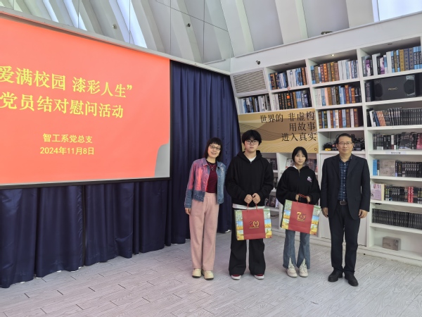 为促进智工系党员与困难学生之间的紧密联系,增强党组织的凝聚力和战斗力,同时传承和弘扬中华优秀传统文化,11月8日,智工系党总支在泰晤士小镇钟书阁举办了一场以“爱满校园 漆彩人生”为主题的党员结对慰问活动。副院长潘国俭以普通党员身份参加,智工系全体党员及结对学生参与,活动由智工系党总支副书记陆琳主持。
