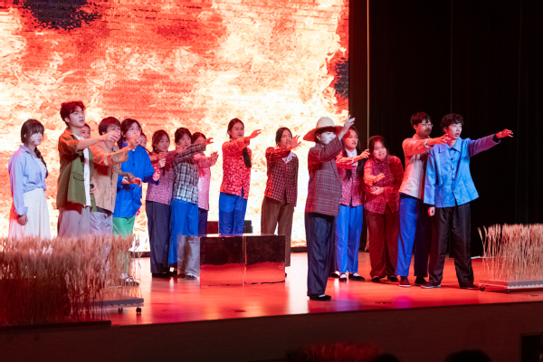 原创农业剧《上农匠心》由学院师生自编、自导、自演,历时7个月的精心筹备,于2024年4月26日首次与观众见面。该剧以上农师生建校70多年来服务“三农”,主动对接乡村振兴、重点产业领域发展和推进农业农村现代化为主线,全视角、立体化、多形式再现了上农老中青三代扎根“三农”沃土、谱写助农华章的奋进故事。在学院党委的大力支持及指导下,师生再次对剧本精心打磨,将动物医学、插花花艺、种子生产与经营等专业知识融入,将该剧从校内推广到校外的舞台进行展演与实践。从编写剧本到遴选演员、组织排演及最终展示,在紧张集训中,师生们从节目编排、音乐编辑,再到服装道具准备、表演技艺等各方面都尽最大努力,力求精益求精。舞台上,跌宕起伏的故事情节,鲜活生动的人物形象,生动有趣的语言都给观众留下了极其深刻的印象。观众全程热情高涨,不时阵阵掌声回响在剧场。
