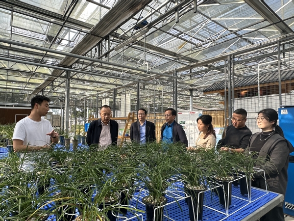 在副院长潘国俭的陪同下,韩海强一行前往五厍实训基地,参观了兰花馆、智能温室、动物医学临床教学实训室、植物工厂、农机展示馆、植物组培实训室等,并详细询问了实训基地的运行和管理。