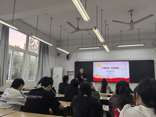 为了充分发挥优秀朋辈群体的示范和引领作用,教育引导广大学生向先进典型学习,激发青年学子的爱党爱国情怀,11月13日,在一教206教室,动科系学生党支部开展从军旅到校园党员故事分享主题党日活动。活动由学生党支部书记程梦勤主持,全体入党积极分子和部分学生骨干参加。