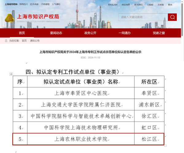 根据上海市知识产权局《2024年上海市专利工作试点示范单位拟认定名单》,学院拟认定为专利工作试点单位。这一认定是对学院在知识产权领域所做工作的肯定,也是对学院科研创新和专利保护工作的认可。