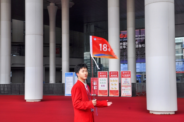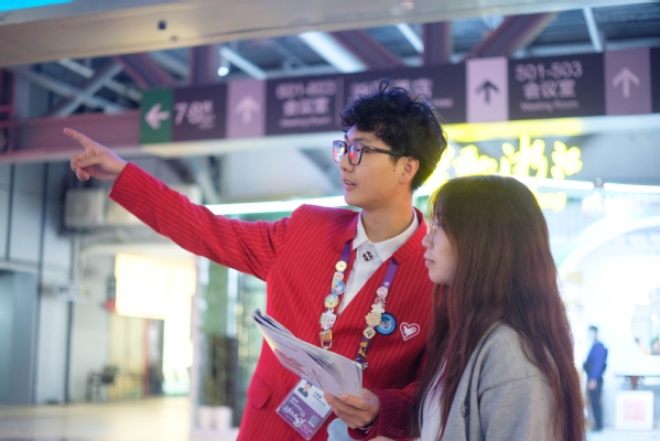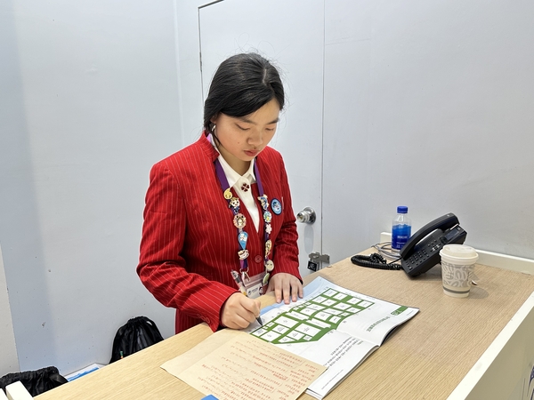 风景221班刘敏:作为一名大三学生,很荣幸有机会能继续参与进博会,成为一名二年级“小叶子”。今年我位于综合接待——内宾接待一组,于我而言是一种全新的挑战,要怎么应对应急状况以及如何处理好与嘉宾沟通联系都是我需要学习的。内宾接待相较于其他岗位而言,压力更大,接到接待任务后,我们需要设计规划最优路线,每涉及一次路线就需要不断踩点,每天2万步数不在话下。今年的岗位给我提供更多的成长机会,提升了我面对应急情况的能力以及与领导的交流能力,也提升了与搭档的配合能力。