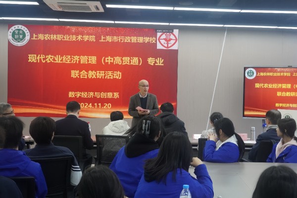 11月20日,上海市行政管理学校校长仲肇森、教学副校长钱晓杭带领部分老师和农经2023级31名学生赴我院联合举办“专业联合教研活动”,党委委员、副院长费国强带领质量处、学院督导以及创意系班子成员和部分师生参加本次交流活动。活动由创意系主任路以兴主持。