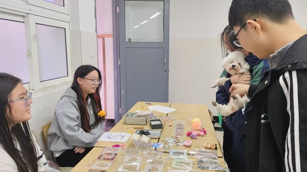 活动当天,尽管室外气温骤降,但一教202教室内却洋溢着浓浓的温情与活力。宠物之家的社团成员们与众多爱心学子齐聚一堂,将他们精心制作的手工艺品摆上摊位进行售卖。“我们希望通过自己的努力,能够为流浪猫筹集到更多的生活必需品。”宠物之家社长张翼腾在活动说:“每一份售出的物品,都是对流浪生命的一份支持。”义卖所得的全部款项,将直接用于购买流浪猫所需的猫粮、保暖垫、医疗用品等物资,确保它们能够在这个冬天得到最基本的生存保障。