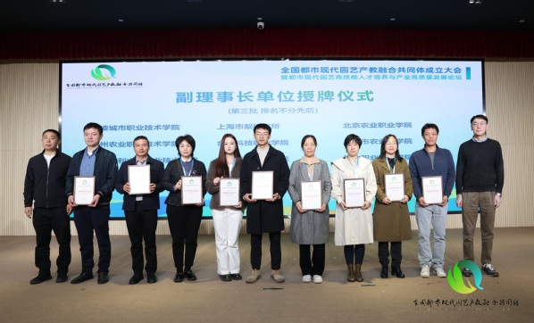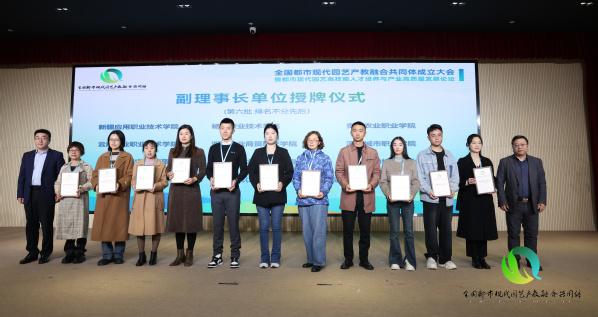 会上举行了全国都市现代园艺产教融合共同体授牌仪式,与会领导分别为理事长单位和副理事长单位授牌。