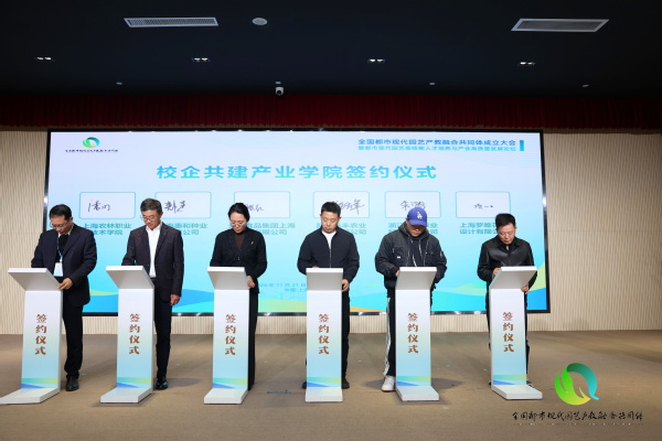 大会同期举行了都市现代园艺产业学院成立揭牌仪式,赵晓伟、蔡红为都市现代园艺产业学院揭牌。同时,学院与上海惠和种业有限公司、凯盛浩丰农业集团有限公司、光明集团上海五四有限公司、浙江森鸿农业科技有限公司、上海罗唯花艺设计有限公司5家公司签署校企共建产业学院合作协议,共同探索都市现代园艺全产业链高技能人才培养新模式。