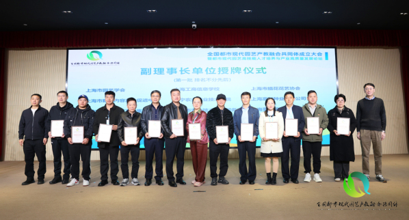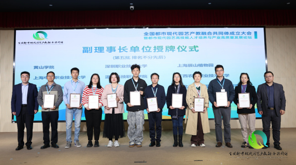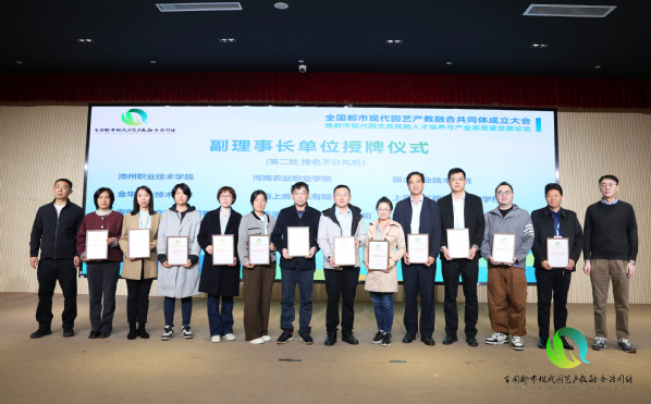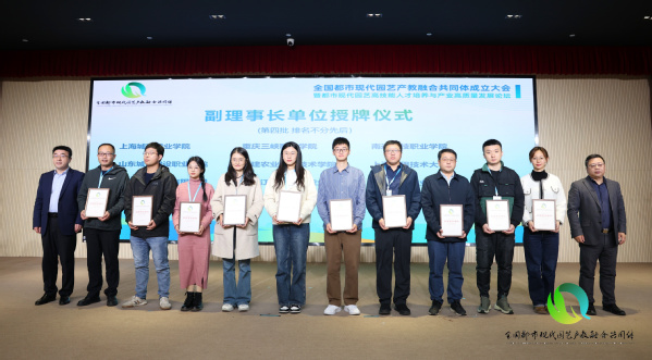 会上举行了全国都市现代园艺产教融合共同体授牌仪式,与会领导分别为理事长单位和副理事长单位授牌。