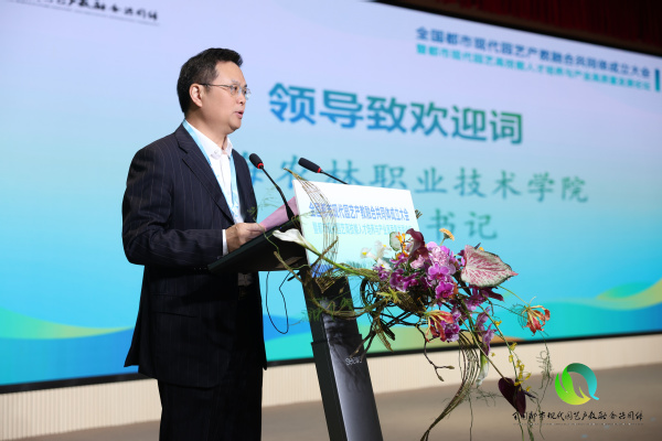 党委书记蔡红代表学院致欢迎辞。他表示,学校高度重视职业教育改革,认真贯彻落实党中央、国务院关于职业教育产教融合的有关部署,持续深化产教融合,坚持多元育人,促进学校高质量发展。作为共同体牵头的职业院校,将会以共同体成立为契机,聚焦目标,履行职能,充分发挥共同体平台作用,协同各成员单位全力打造都市现代园艺全产业链资源服务新格局,为服务区域经济发展和现代园艺全产业链高技能人才培养作出更大贡献。