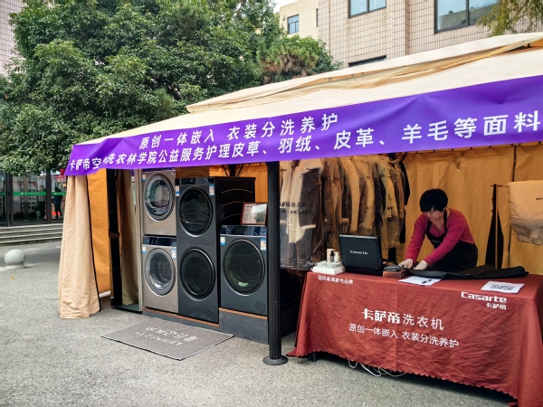 高端科技,精准养护。继续引入海尔旗下顶级品牌“卡萨帝”的最新款洗干集成机,针对羽绒服、大衣、棉被等秋冬厚重衣物提供深度的空气洗服务。利用高温空气循环,无需水洗即可有效去除衣物异味,恢复衣物蓬松度,让参与活动师生的每一件衣物都能得到最专业的呵护。