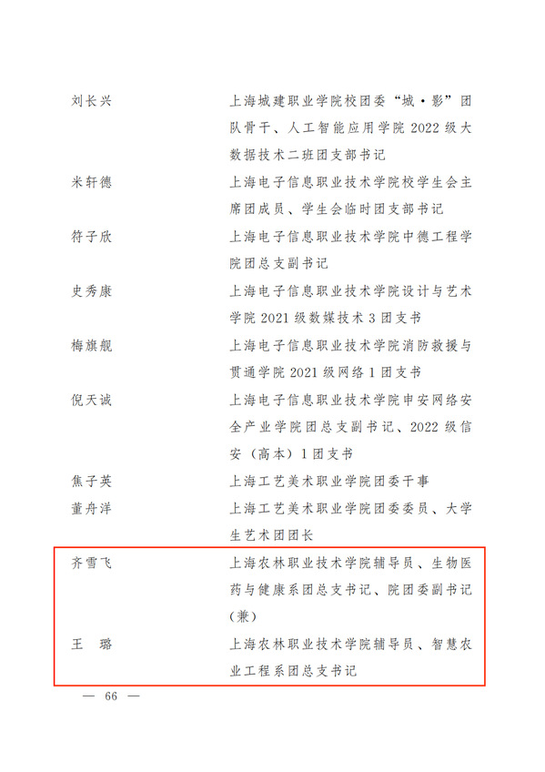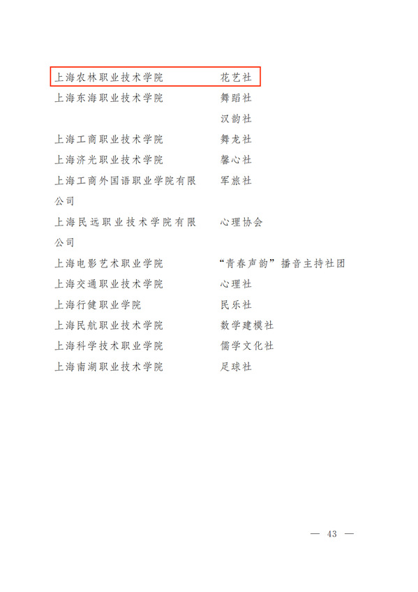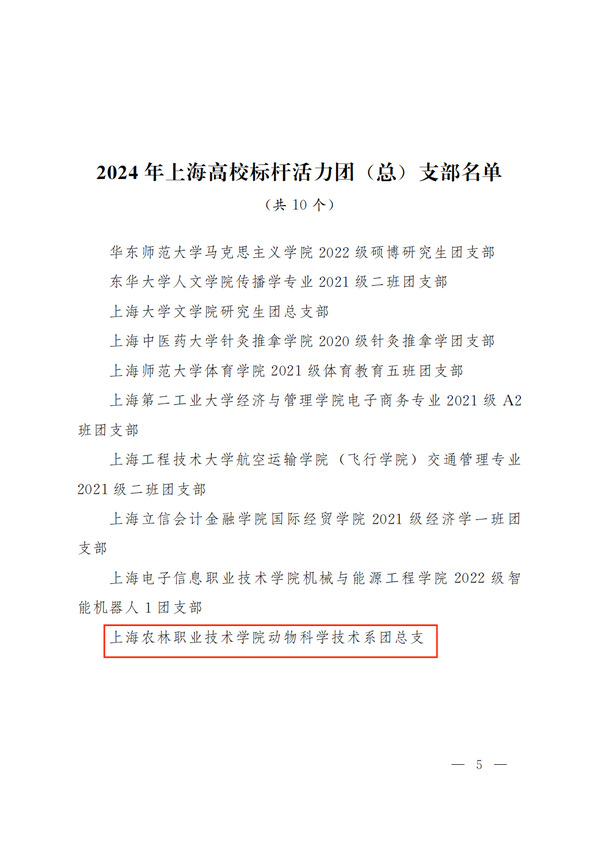 为表扬先进、树立典型,进一步增强示范引领,持续激发高校、高中阶段学校基层团组织、社团、团干部活力,共青团上海市委员会、上海市教育委员会于今年3月启动2024年度上海高校、高中阶段学校活力团组织、活力社团、团干部典型遴选活动。共青团上海市委员会、上海市教育委员会于近日发布《关于表扬2024年度上海高校、高中阶段学校活力团组织、活力社团、团干部示范典型的决定》,动物科学技术系团总支被评为标杆活力团(总)支部,花艺社被评为上海高校活力社团,齐雪飞、王璐被评为上海高校团干部示范典型。