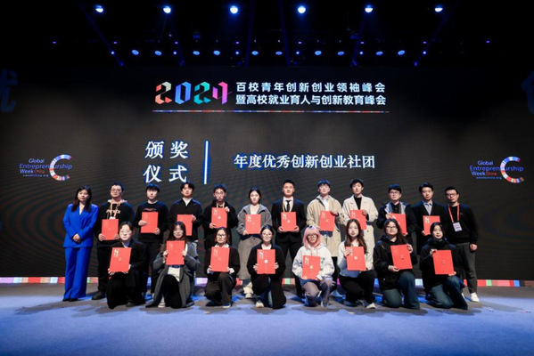 在百校青年创新领袖及创新创业社团颁奖仪式上,社长郝晶晶和优秀学生代表尚昊彤上台领奖。作为社团社长,郝晶晶在日常社团运营、项目策划与执行等方面都起着至关重要的作用。这一荣誉将激励更多同学积极参与社团活动,培养自己的领导能力和创新创业精神。