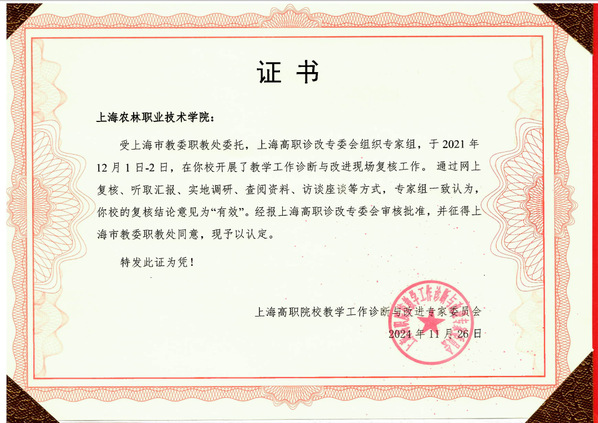会上,杨应崧主任委员宣读“关于公布上海高职试点院校诊改复核结论的通知”,向上海电子信息职业技术学院、上海农林职业技术学院、上海出版印刷高等专科学校、上海交通职业技术学院四所成功通过诊改复核的院校颁发了“有效”证书,这是对各校诊改工作成效的高度认可。
