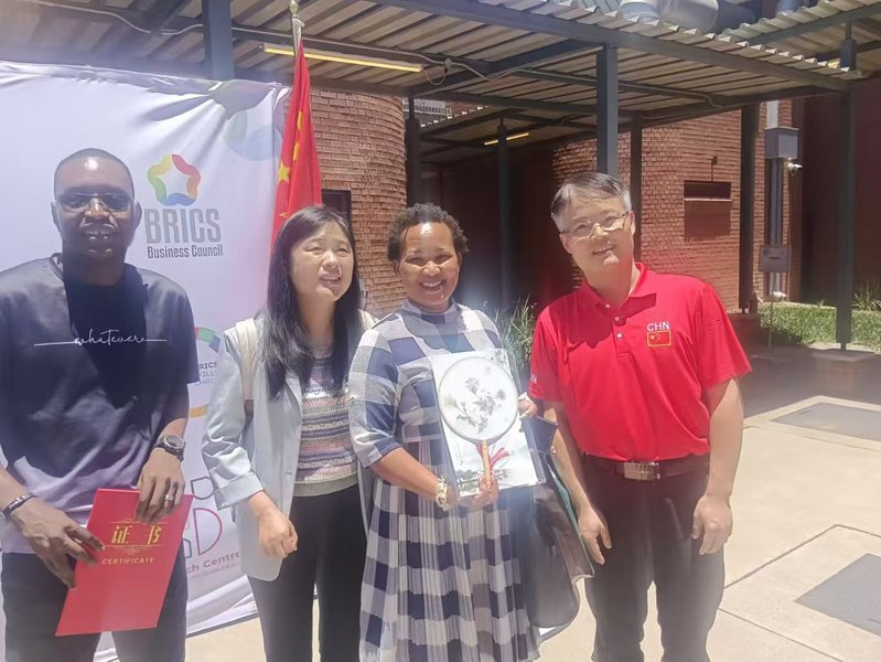 到访南非期间,我院代表团在备赛和参赛之余,还与金砖国家工商理事会中方技能发展工作组主席、一带一路暨金砖国家技能发展国际联盟理事长、厦门市金砖未来技能发展与技术创新研究院院长刘振英、金砖国家工商理事会技能发展、应用技术和创新(南非)工作组主席马普莱·恩卡尼瓦、主席助理博诺洛、南非西北大学、南非数字创新中心(AB4IR)等高校和机构的领导围绕职业教育、现代农业等主题进行了友好交流,并向中方和南非方领导赠送了植科系师生精心制作的“花·果·药”真花艺术—矮牵牛及草莓压花工艺作品。