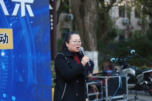 团委书记张楠介绍此次活动的背景及意义,希望同学们能在此次活动中大展身手,在售卖商品的同时也向同学们传递相关的商品文化,提高创新创业能力。