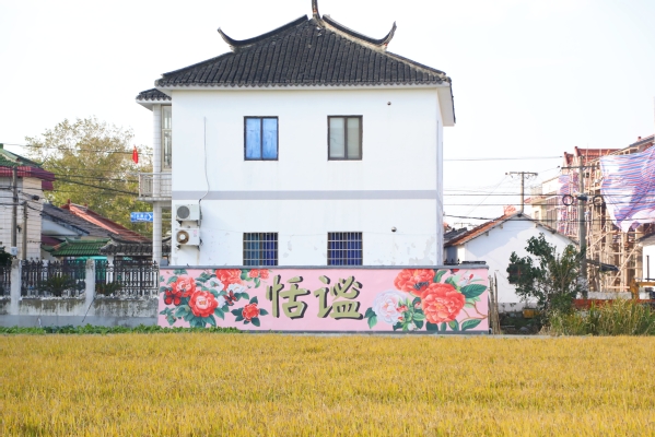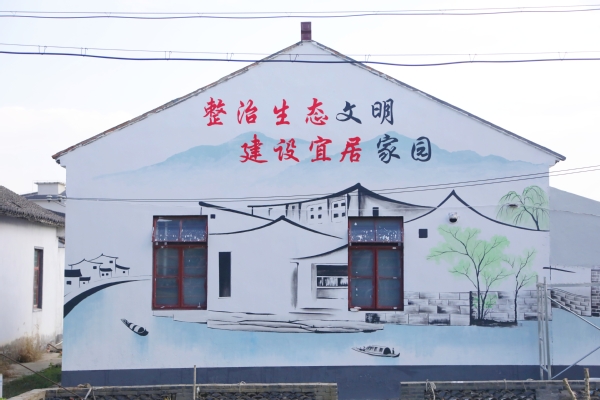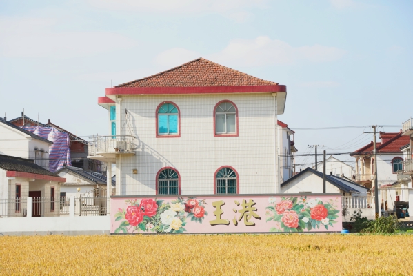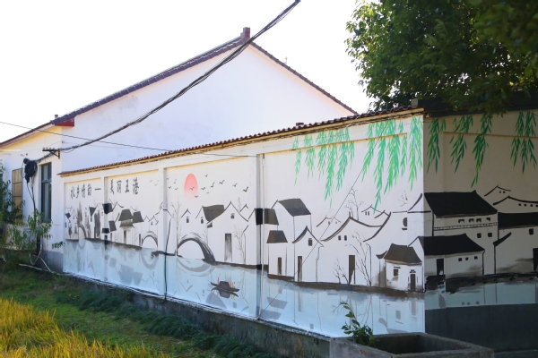 在村入口处,一幅以“恬谧王港”为主题的墙绘映入眼帘,山茶花竞相绽放,形态各异,色彩斑斓,与周遭景致和谐共生,宛如一幅动人的田园诗篇,吸引着过往行人的目光,成为王港村一道亮丽的风景线;村委会的墙面上,“水乡情韵,大美王港”的画卷徐徐展开,生动展现了王港村水运文化的繁荣景象,将江南水乡的柔美与毛竹快船的灵动巧妙融合,构成了一幅充满水乡风情的诗意水墨,彰显了村委会的独特韵味与文化深度;民居外墙则以“生态王港,共建美丽家园”为灵感来源,融入江南水乡的经典元素,让民居都焕发出独特的魅力,提升了乡村的整体美观度,营造了浓厚的文化氛围;党群服务中心则以红色文化为中心,展现新时代的青年积极向上建设美丽乡村的奋斗画面。