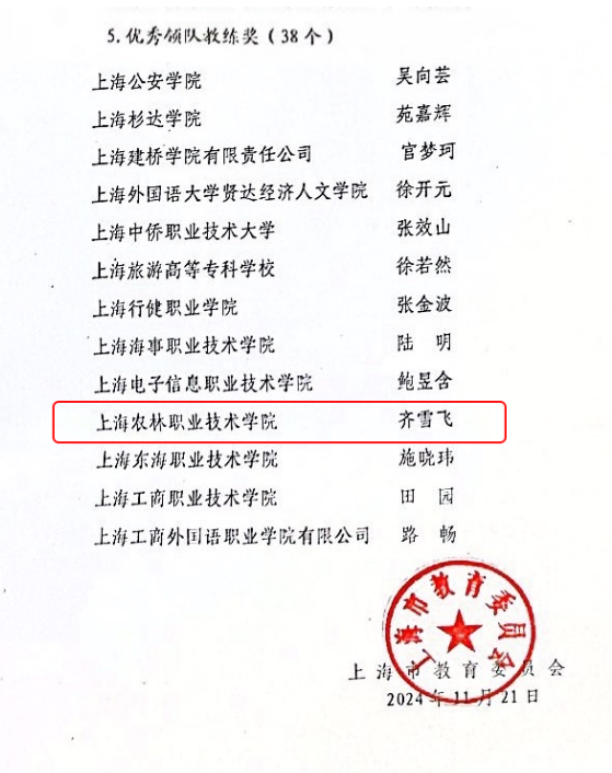 近日,上海市教育委员会公布“尚法杯”2024年上海市高校大学生法制辩论赛获奖名单,我院辩论队植科系生技231班张伶俐获最佳辩手奖,指导教师齐雪飞获优秀领队教练奖。