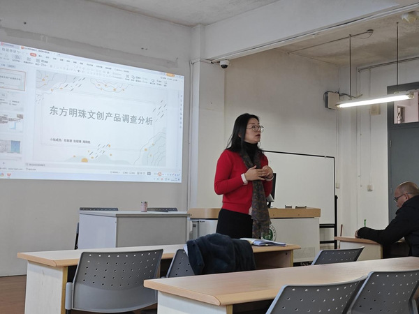 学生们通过线上和线下实地调研、资料搜集与分析等多渠道整合数据,设计出兼具实用性和艺术性的,以东方明珠为主创元素的生活用品、diy玩具、家居用品等文创品。汇报会现场对设计的作品进行了详细的讲述。