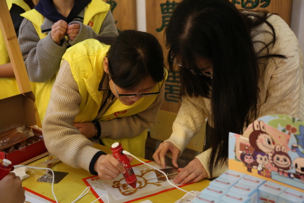 活动现场,院青协发起“巧手匠心 共‘串’美好”志愿时长兑换DIY手工串珠活动,通过手工艺传递志愿服务的美好愿望。植科系开展“锦绣香囊 志愿四方”香囊制作活动,在动手制作的同时,增加了师生们对各种香料的认识;动科系开展文明养宠宣传,提高学生文明养宠意识;创意系手套DIY制作,在寒冷的冬天为大家送上特别的温暖;生药系在现场开展生态文明志愿活动,设置“绿色银行”回收同学们的废旧书本、矿泉水兑换成小绿植;智工系推出手机贴膜服务,并现场传授贴膜技巧,引来众多学生驻足参与;附设中职班带来了糖画制作,传播了非遗文化,吸引了许多同学现场制作并品尝糖画,同时还准备了各种色彩的颜料,师生们在画布上留下手印,共同传递志愿青春的力量。
