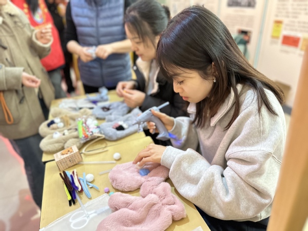 活动现场,创意系的摊位前人潮涌动,同学们被一系列富有创意且意义深远的互动活动深深吸引,并亲手制作了一副独一无二的手套。每一份装饰、每一份用心,不仅仅是为了抵御冬日的严寒,更是为了传递手工制作的乐趣与成就感。在创作中,同学们找到了属于自己的乐趣,同时也深刻感受到了志愿服务带来的意义。