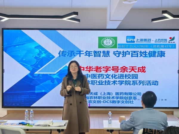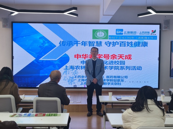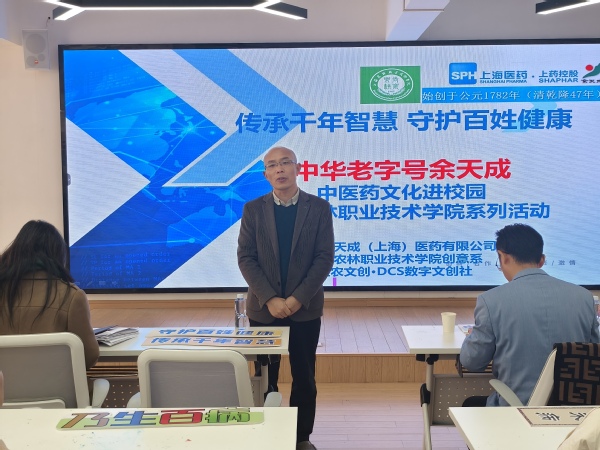 12月6日,在农经楼308文创实训室,传承千年智慧 守护百姓健康——“中华老字号余天成中医药文化校园系列活动讲座”在农经楼308文创实训室举行。中医药文化是中华民族的瑰宝,本次讲座不仅让师生们领略了中医药的博大精深,也为校园文化建设增添了一抹独特的色彩。