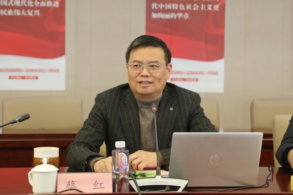 蔡红对邵金敏一行表示热烈欢迎,他从办学模式、办学规模、系部设置、专业设置等方面介绍了学院的基本情况,并从专业群建设、人才培养、产教融合、关键办学能力、科研成果、社会服务、国际交流合作等方面介绍了学院的办学成果。