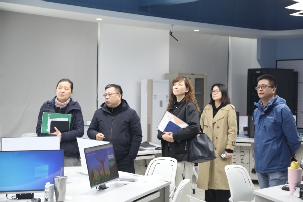 会后,邵金敏一行在张江的陪同下,参观了虚拟仿真实训室、花艺实训中心、校史馆、融媒体技术实训室。