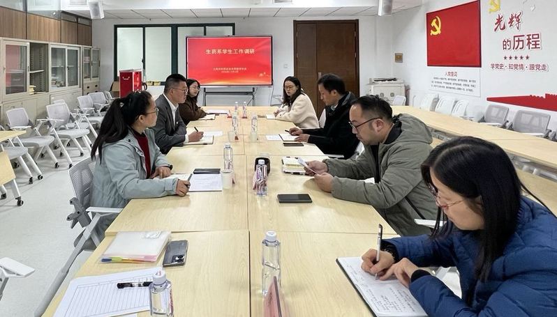 在调研过程中,邵阳一行实地走访了各系学生工作办公场所,充分肯定各系学工队伍工作状态、工作氛围及精神风貌,并认真听取各系就辅导员队伍建设、学生思想政治教育、“一系一品”创建工作及存在问题等方面作详细汇报。