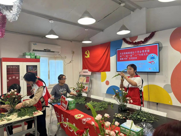 学院红十字会志愿队每月按时前往静安区天目西街道开展“行愿无尽·情暖夕阳”爱老志愿服务,面向老人对花艺技术的相关知识和养护技巧进行讲解、指导。根据社区需求进行蔬菜种植养护技巧讲解,插花技术美化生活,蔬菜养护培育身心,给予老人心灵慰藉,充实日常生活,同时增进青年人对老人的关心爱护之心。志愿队队长李泉欣同学在服务中积极带领同学们参与志愿服务,鼓励老人们参与插花、种植等活动。每次活动开始前,她积极跟社区老师对接服务对象、服务时间、服务地点,跟学校老师对接服务内容并召集学校志愿者。活动开始后,积极配合社区老师工作,做好讲解并组织社区老人进行相应的活动内容体验。志愿者们专业的素养以及服务态度展现了上农青年良好的精神风貌,获得了社区老师和现场老人们的一致好评。
