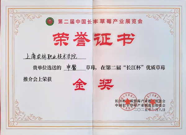 展会期间,来自长三角地区的百余个草莓品种汇聚一堂,展开角逐。评审从口感、香味、果形、果肉质地等多个维度,对草莓的培育水平进行综合评分。在这场草莓的“巅峰对决”中,学院选送的“申馨”草莓凭借其馥郁的香气与绝佳的口感,脱颖而出,摘得金奖。