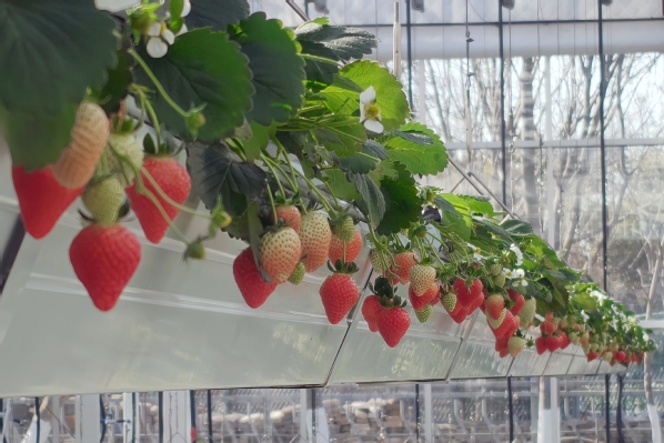 金奖的背后,是学院在草莓种植技术上的持续深耕。此次参赛的“申馨”草莓,出自学院半封闭植物工厂,培育采用先进的“天瀑”无土基质栽培技术。栽培基质选用椰糠、木纤维、泥炭、蛭石等环保材料,从源头上确保生产过程绿色环保、无污染。温室内,一系列高科技设备协同运作,监测传感器与物联网控制系统紧密配合,依据草莓不同生长阶段的需求,精准调控温湿度及水肥供给。这一智能化的种植模式,不仅有效降低了病虫害的发生率,更保障了草莓植株健康茁壮、稳定生长,使得果实既拥有绝佳的口感风味,又积累了丰富的营养物质。
