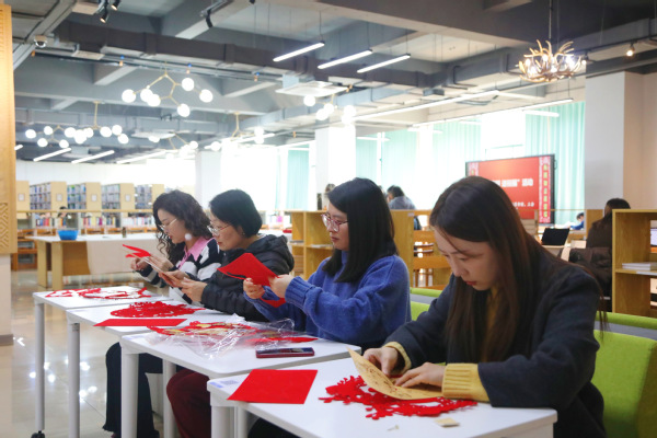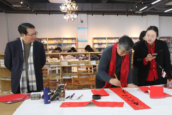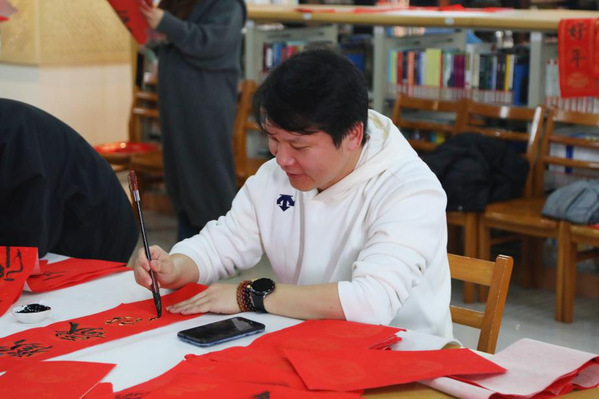 本次活动邀请中国书法家协会会员、上海市书法家协会楷书专业委员会会员郑小云和上海市书法家协会会员、上海市美术家协会会员朱柳杨两位书法名家为师生现场书写春联及“福”字贴。在现场,两位书法家根据师生的个性化需求,将心中对师生的新春祝福凝于笔端,在鲜艳喜庆的红纸上笔走龙蛇,一副副饱含深情、寓意吉祥的春联跃然纸上,传递着传统佳节的浓浓暖意,将墨香飘散在阅览室。