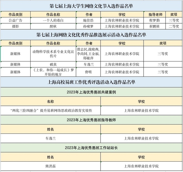 近日,上海教育系统网络文化发展研究中心公布“争做校园好网民,汇聚网络正能量,挺膺担当建新功”上海高校网络文化节遴选活动结果。学院荣获二等奖1项、三等奖3项、上海优秀易班共建案例1项、上海优秀易班指导教师1名、上海优秀易班工作站站长1名。