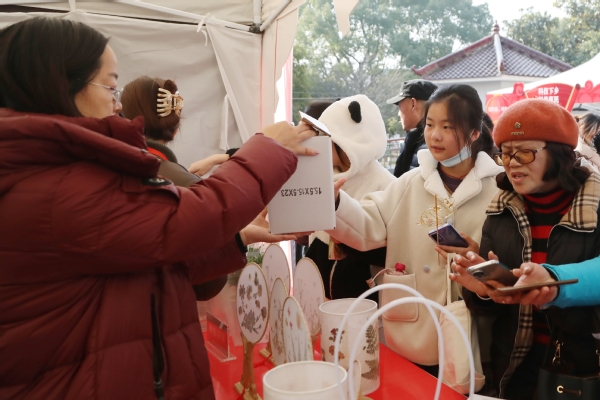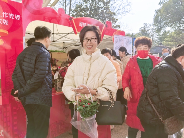 在这场热闹非凡的活动中,学院的展位成为全场焦点。绿植养护讲解和文明养宠宣传2个展位前人声鼎沸,前来咨询的居民络绎不绝。植物科学技术系的鲍文敏老师和周鹏老师,化身“护绿使者”,耐心细致地讲解植物养护知识与技巧。从浇水频率到病虫害防治,深入浅出的讲解让居民们频频点头。为了增强大家爱绿、护绿、植绿的意识,老师们还精心准备了2000份绿植、压花台灯、压花贺卡等精美物品。拿到心仪绿植的居民们喜笑颜开,纷纷表示要将这份绿意带回家,为即将到来的春节增添一抹生机。