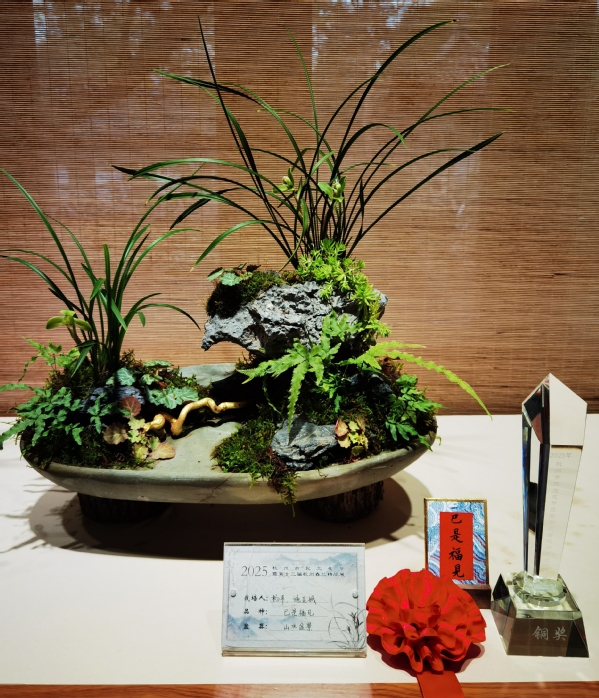 实训基地与上海植物园兰室会同青浦花木园艺协会组成“兰之队”,由副院长潘国俭带队共送展兰花作品23件。本次兰展共展出春兰200余种,400余盆,其中我院送展的兰花山水盆景作品“乙巳一品”和“巳是福见”分别获得金奖和铜奖。赏兰不光看花,花盆也大有来头,当珍品兰花搭配上精致古盆,相映生辉。12日上午一开园,就吸引了众多兰花爱好者驻足观赏、交流学习。