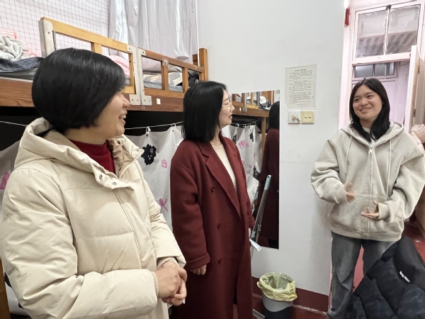 面对领导和老师们的到来,同学们激动不已,纷纷打开话匣子,有的同学兴奋地讲述着自己在假期中参与志愿者活动的难忘经历,有的分享了在旅行中领略到的不同风土人情。还有不少同学热情地拿出家乡特产,递到老师们手中,小小的寝室里充满了温馨与欢乐。