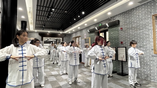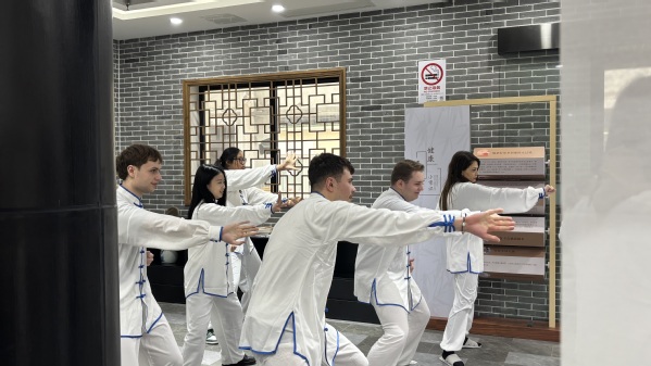 在余天成古色古香的庭院中,师生们在专业导师的指导下,学习了中国传统健身功法——八段锦。导师从动作要领、呼吸配合到养生哲学,进行了深入浅出的讲解,并亲自示范了“双手托天理三焦”“左右开弓似射雕”等经典招式。法国学生起初动作略显生疏,但通过反复练习和趣味互动,逐渐掌握了动作的精髓。一位法国学生感慨:“八段锦看似动作轻柔,却能让人感受到全身能量的流动,这让我对中国‘阴阳平衡’的理念有了更直观的认识。”