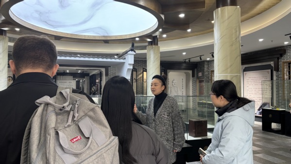 余天成文创园店负责人朱辉向师生们详细介绍了余天成的悠久历史和独特文化,展示了珍藏的古老制药工具,如药碾、药秤、药臼等,并讲解了这些工具在传统中药制作中的关键作用。中法两国的同学们对这些承载着历史记忆的工具兴趣盎然,纷纷拍照留念,赞叹中医药文化的博大精深。