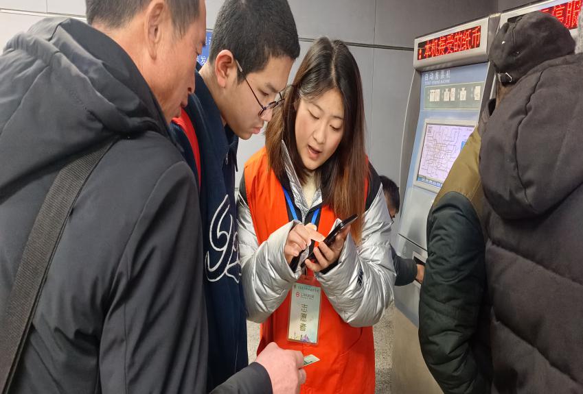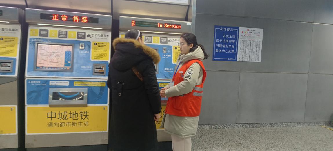 为保障春运期间轨道交通有序运行,轨道交通志愿服务团队在上海火车站地铁站开展“暖冬行动”志愿实践活动。他们身着统一志愿者马甲,佩戴醒目标识,以规范的服务和热情的态度,化身春运“护航者”,为南来北往的乘客提供贴心帮助。在人流密集的站厅和站台,志愿者们分工协作:有的手持指引牌引导乘客快速出站、换乘;有的驻守自助售票机旁,协助不熟悉操作的旅客购票、充值及查询路线;有的穿梭于闸机口,为行李繁重的乘客搭把手。面对乘客关于首末班车时间、周边地标等高频问题,志愿者们提前熟记信息,耐心解答。针对老人、孕妇、残障人士等特殊群体,团队还提供“一对一”帮扶服务,从优先通道引导到全程护送乘车,用行动传递城市温度。2月3日至2月15日13天的坚守中,这支年轻团队累计服务超过2000人次,他们用微笑和汗水诠释了“奉献、友爱、互助、进步”的志愿精神,为繁忙的春运线增添了一抹温暖的亮色。