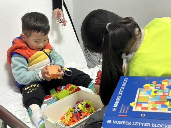 在志愿者们的陪伴下,孩子们暂时忘记了病痛的烦恼,脸上洋溢着灿烂的笑容。他们和志愿者们一起搭积木、拼拼图,在游戏中锻炼动手能力,用积木搭建出心中的美好世界。