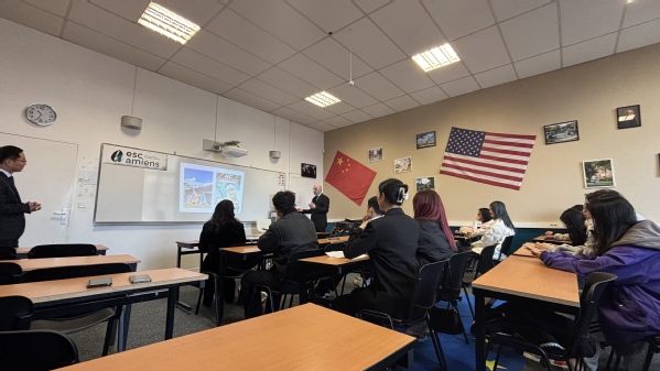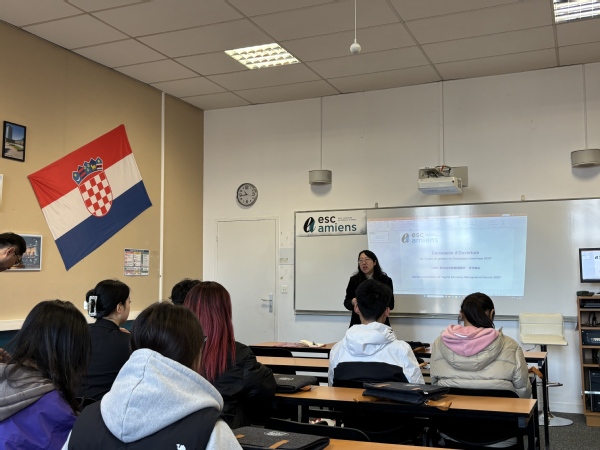 3月4日,学院与法国亚眠高等商学院学分互认项目——数字经济班在法国开班,来自学院的14名学生、法国亚眠高等商学院校长杨·图尔内萨克(Yann TOURNESAC)、数字经济与创意系副主任王海丽及法方相关师生等参加本次开学典礼。