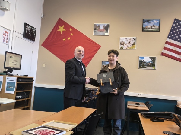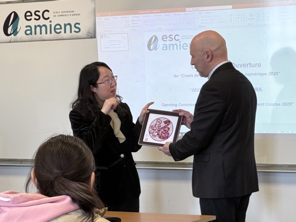 为了欢迎我院学生,亚眠高等商学院精心准备了书包和笔记本等学习用品,我院则回赠了具有中国特色的“金蛇献瑞”非遗剪纸礼物,预祝合作项目圆满成功,也象征着中法文化的交流与融合。