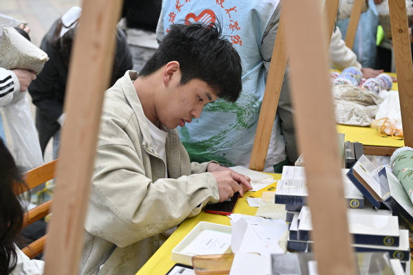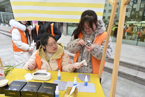 数字经济与创意系精心策划的“传承雷锋精神,共筑绿色梦想”摊位吸引了众多师生。摊位设置塑料瓶、旧书籍等可回收物兑换香囊包,以及志愿者凭100小时服务时长兑换艾草锤的活动。香囊包含艾草等香料,有驱虫醒脑的功效;艾草锤由天然材料制成,实用环保。现场气氛热烈,连来自法国亚眠商学院的学生们也被深深吸引,纷纷驻足体验。