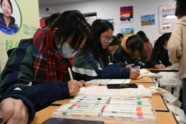 活动伊始,文体部骨干早早抵达场地,用心布置,将大小各异的帆布包、色彩斑斓的丙烯马克笔整齐摆放,为活动的开展精心筹备。同学们纷至沓来,有序签到后,领取空白帆布包,开启了属于自己的创作之旅。大家围绕画布,凝神构思,不少同学早已按捺不住内心的创作热情,迅速拿起画笔,在帆布包上勾勒起心中那充满生机的春天景致。