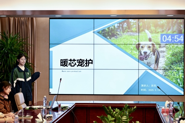 比赛邀请校外导师担任评审,59个项目负责人分别从创意想法、实施方案、产品展示、财务分析、发展规划等方面,通过PPT进行现场路演。项目涉及植物、花艺、宠物、健康、技术等多个领域,充分展示了当代学生关注社会问题、积极寻求解决方案的责任感与创造力。