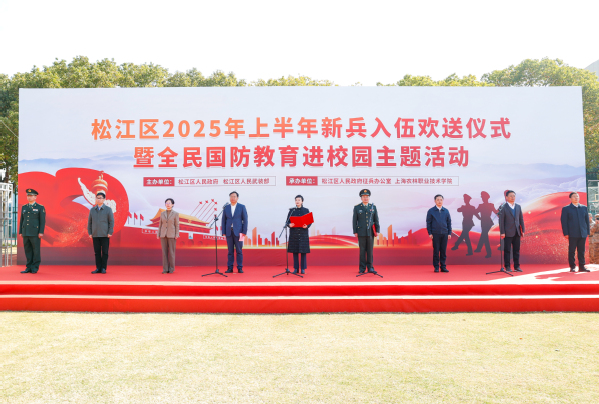 3月17日,松江区2025年上半年新兵入伍欢送仪式暨全民国防教育进校园主题活动在我院举行。区委副书记、区长王靖,区委常委、区人武部部长周晓光,区委常委、副区长刘福升,党委书记蔡红及松江区相关领导出席仪式,新兵家属代表和学院师生齐聚一堂,共同见证这一光荣时刻。